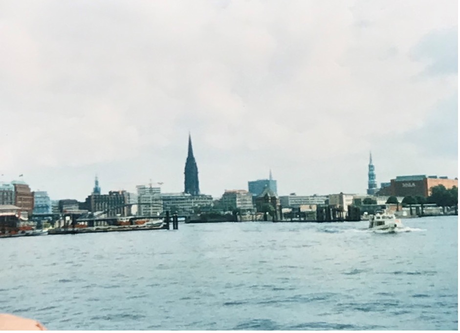 View of Hamburg skyline—that last thing Oma saw when she departed. An emotional boat ride for me.