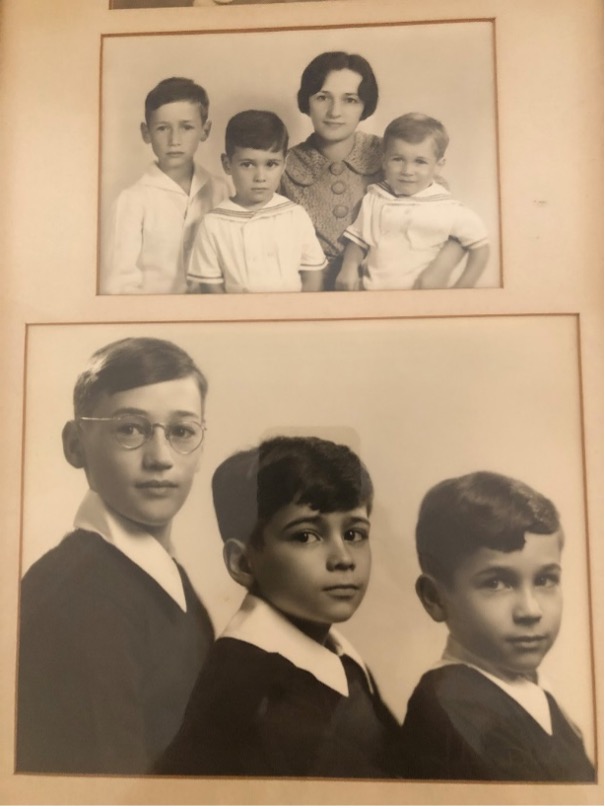 While I have never met any of these ancestors, I see a resemblance between some of them and my family, especially my father’s two younger brothers, Uncle Phil (1934-1996), and my Uncle Tom (1932-) with whom we are about to celebrate the 90th birthday in Highland Park, north of Chicago. I have learned that this suburb of Chicago has a large and vibrant Lithuanian population, and it is where, in my childhood, we traveled by train from Milwaukee to visit Nana’s aunts, Libbie and possibly Anna, the woman in the photo. Here is a photo of my father, the oldest, with his two brothers and mother. My grandmother, at the age of about 30 years old, is the niece of Anna Druskin. The resemblance is striking. This is the reason I’ve come to Lithuania; to see and feel these connections of the family to the land, to the place where it all began.