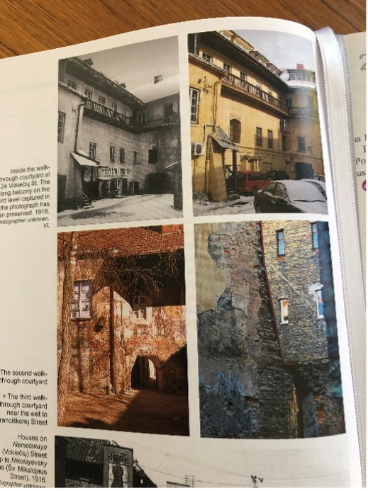 My other text for historical data about Jews in Lithuania, Vilnius: Traces of the Jerusalem of Lithuania, by Irina Guzenberg, has given me a wealth of historical photos that help me to imagine the Vilnius of my ancestors’ era. For example, my apartment on Vokieciu Street, located in a building from the 1600s, was certainly a place that my ancestors might have walked by in their lifetimes. A photo of my building from 1916, in this book, confirms that the building hasn’t changed much!